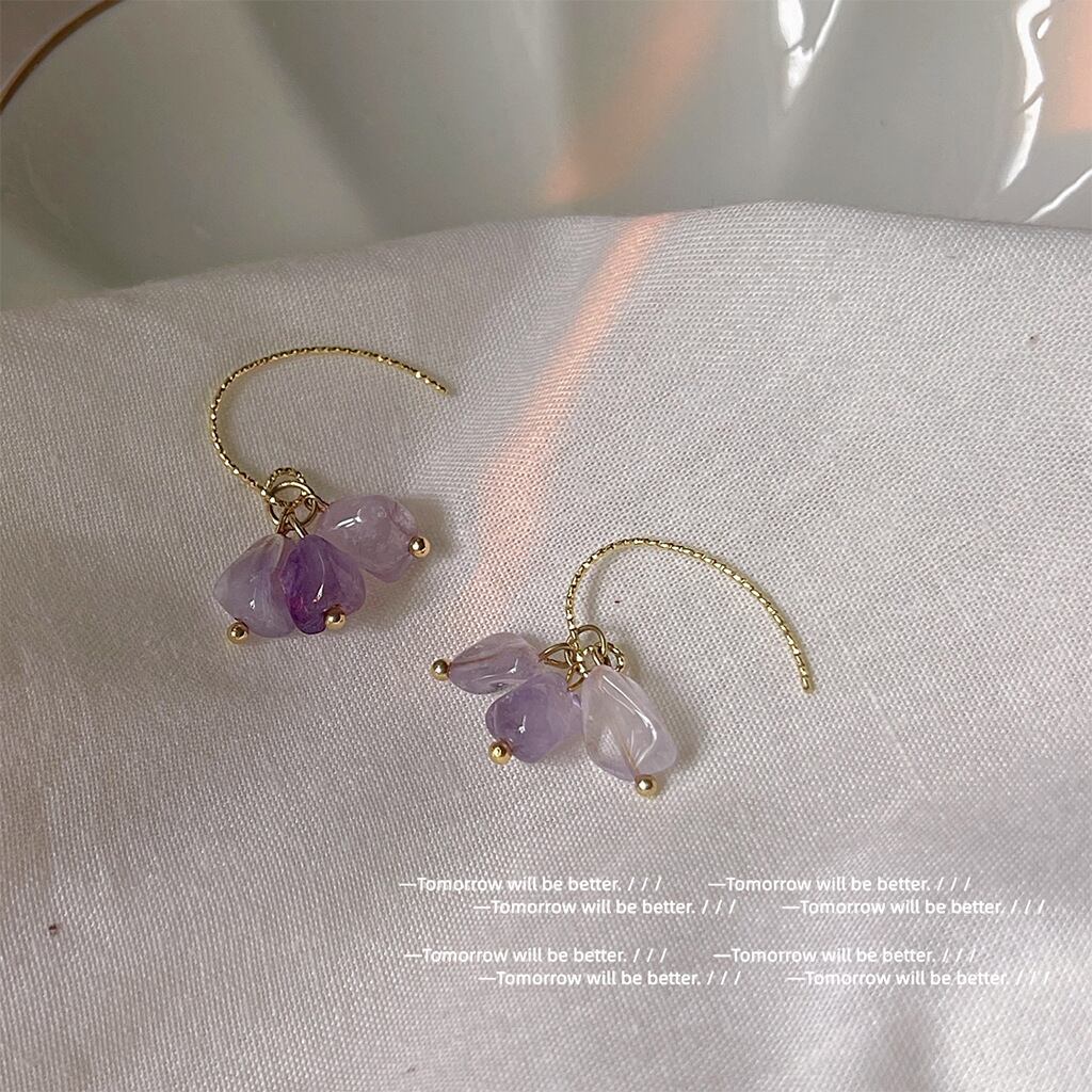 豪華な14Kゴールドを使用しており、耐久性が高く長くご愛用いただけます。ピアスは一粒の紫晶石が上品に輝くデザインで、耳元を華やかに演出してくれます。お顔まわりを明るく引き立て、シンプルながらも存在感のあるアクセントとなります。