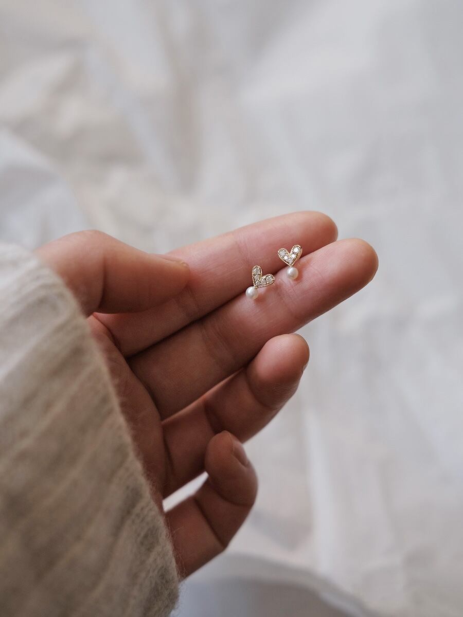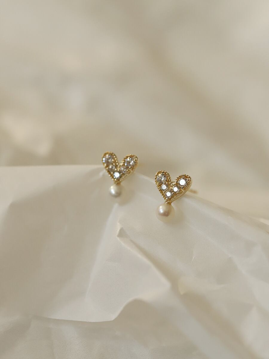華やかな輝きを放つハートとパールピアスが登場しました!14Kゴールドシルバー925を使用した高品質な仕上がりで、どんなスタイルにもぴったりのアクセサリーです。