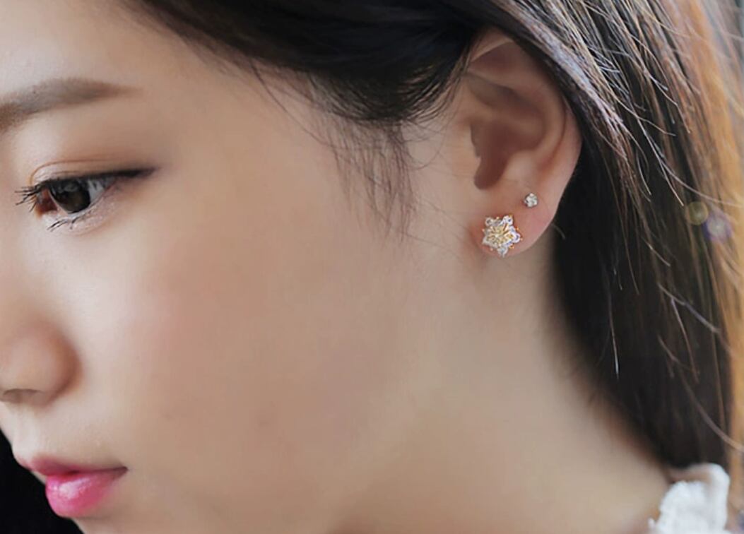 14Kゴルードシルバー925 キラキラ雪の結晶スタッドピアス