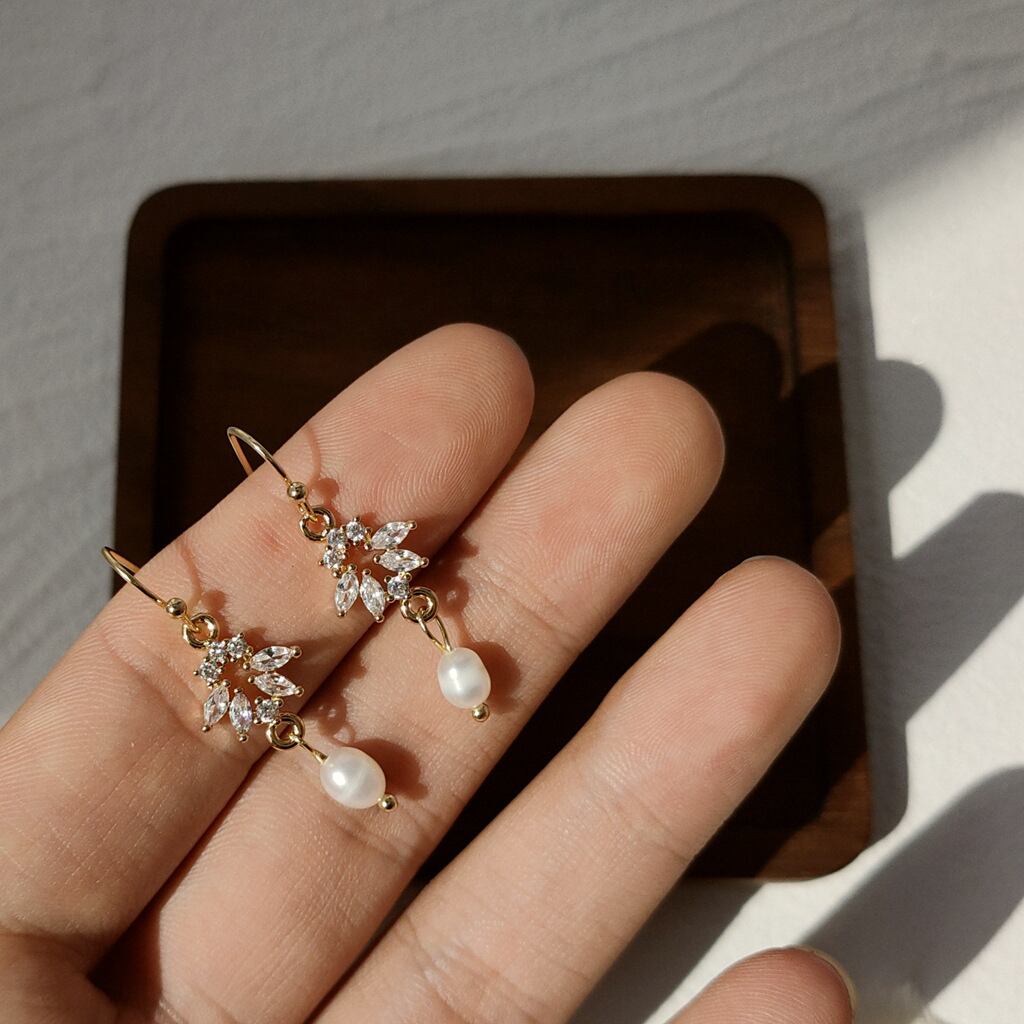 上品な輝きが魅力のシルバー925揺れる天然パールピアス