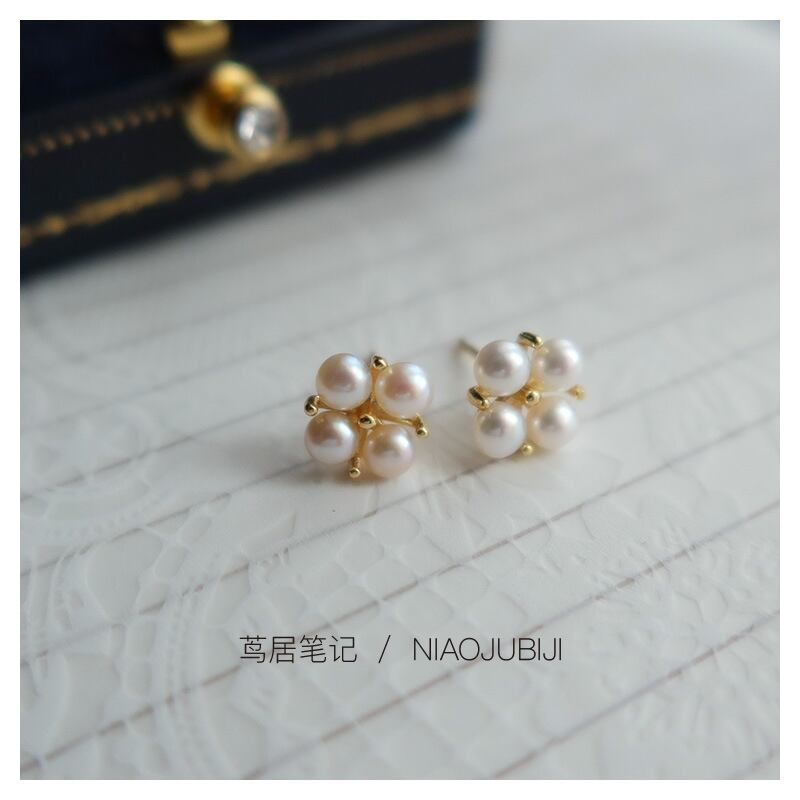 シルバー925四つ葉の天然パールピアス